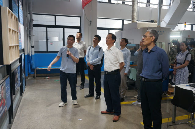 调研组一行先后参观了智能制造工程中心与机械制造工程中心,进一步了解学校教学科研设施建设,并对我校实训基地建设及校企融合特色办学等方面取得的突出成绩给予了高度赞誉。