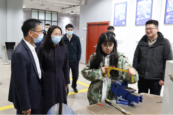 曹国光一行还走访了我校智能制造工程中心,机械制造工程中心,实地调研了学生实训及创新创业情况。