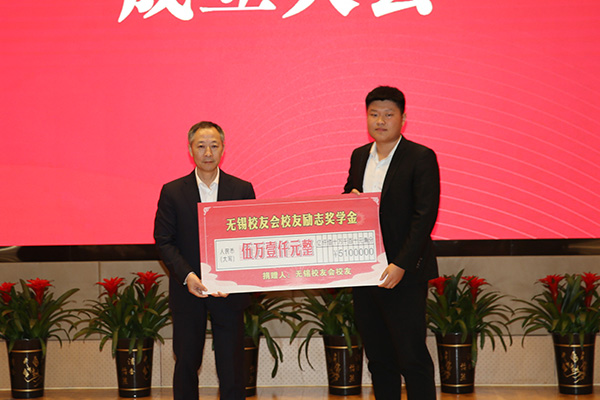 会上还举行了“无锡校友会校友励志奖学金”颁发仪式,李耀武等14名优秀校友捐资助学17名在校生,无锡校友会会长沈剑标在讲话中勉励受奖努力学习,以优异的成绩回报母校、回馈社会,为母校添光增彩。