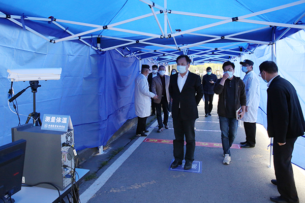 唐加俊局长一行在校门口体温测量点