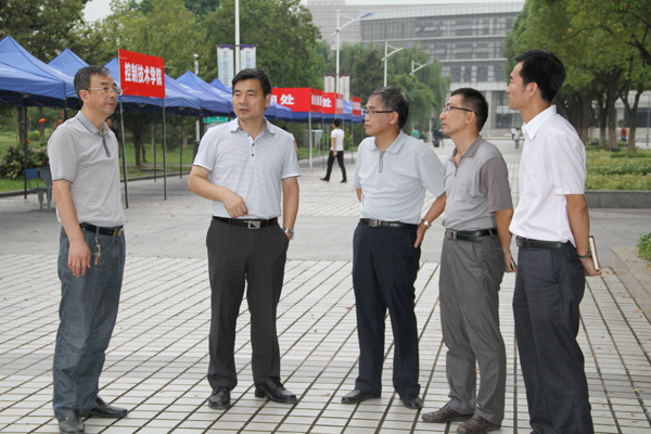 9月13日是我校2014级新生集中报到的日子。12日下午,校领导朱爱胜、龚方红、华坚来到中央大道,检查新生接待工作准备情况,并进行了具体指导。