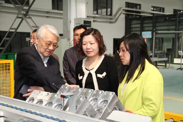 姚建铨院士(左一)参观智能工厂
