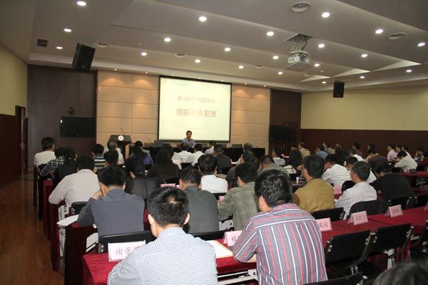 5月14日下午,无锡市滨湖区检察院犯罪预防科孙耀民科长来到我校,结合职务犯罪预防和党风廉政建做了一堂生动的廉洁教育专题报告会。校领导龚方红、戴勇、谈向群、华坚、顾京、周桂瑾及全校副科级以上干部、重点部门工作人员130余人到场聆听。