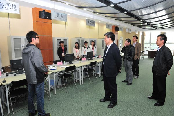 朱爱胜书记一行先后来到学生创新成果陈列室、创业街、生活广场、学生社团办公场所、大学活动中心、学生事务服务中心、图书馆等地,逐一查看了有关学生活动场所改造和建设项目进展、工程质量和环境布置等情况,听取了学生处、团委、基建办公室、后勤处等负责人对相关工作的汇报。