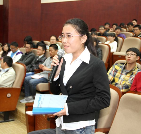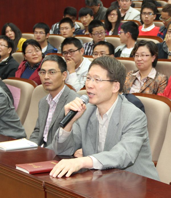 2014届毕业生袁贝、正院级调研员戴勇教授先后就我校师生关心的问题向黄莉新书记进行了提问,黄书记精彩的回答赢得满堂掌声。(活动办)