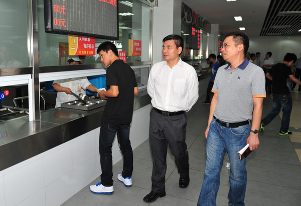 9月22日中午,校领导朱爱胜、龚方红、戴勇、冯渊、顾京、周桂瑾在院办、后勤服务总公司等部门负责人的陪同下,前往太湖校区8号综合楼新食堂调研工作,并与学生一起用餐,亲身体验新食堂的供餐情况。