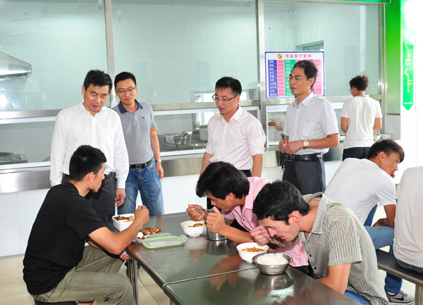 在调研中,校领导深入操作间、售卖间、洗碗间和就餐区域,就食堂的设施设备、卫生状况、饭菜制作流程、明码标价和餐饮服务人员亮牌服务等进行了细致的检查,向后勤服务总公司以及食堂工作人员详细询问了食品供应、卫生安全、饭菜价格、后勤基建以及9月底来校新疆培训班学生的饮食准备情况,并与就餐学生亲切交谈,了解他们对食堂的饭菜价格、口感、种类、份量、就餐环境、服务态度等方面的感受和建议。在清真食堂,校领导还与来自新疆的少数民族学生倾心交谈,了解他们对清真餐饮的需求。