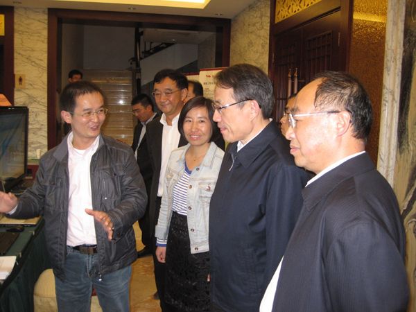 省教育厅厅长沈健(右二)省教育厅副厅长杨湘宁(左二)等领导视察我校展区